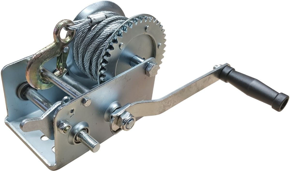 This hand winch has an impressive maximum pulling capacity of 1130 kg. By adjusting the handle position, you can choose the gear ratio that suits you best, selecting between a 4:1 or 8:1 ratio. For safe operation, the winch is equipped with a locking function in both forward and reverse directions. The winch comes complete with a 10-metre cable.